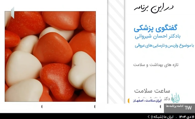 On January 6, 2026(1404/10/16), Dr. Ehsan Shirvani, the Head of the Interventional Cardiology Research Center, appeared as a guest on the “Iran Salamat - Isfahan" program on Channel 1, focusing on the topic of **Varicose Veins and Vascular Insufficiency **.
